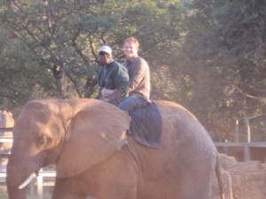 We had scheduled a ride on the elephants as part of the tour. We watched a few couples take the two lap ride and patiently awaited our turn to mount these massive beasts. Well, mounting proved to be a bit tricky. What should have been a simple exercise turned into full on comedy for the twenty or so Argentines, Mexicans, Dutch, and Aussies there with us. The formula was supposed to be a no-brainer—each couple would mount the elephant, woman first then man after the trainer had taken his place at the front. The diminutive jockey hopped right on, followed by my wife. Then it was my turn. My legs just wouldn’t do what my brain was telling them. Apparently, I’m the most inflexible human being alive, or at the very least, the most inflexible human to ever patronize the Elephant Sanctuary in Hartbeespoort Dam, South Africa.