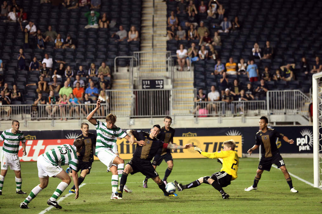 I watched 45 minutes of crappy soccer until the last few minutes. Yeah, the flood kept me out so that I missed the goal and most of the Union regulars. Then I watched both teams kick the ball around and do nothing for most of the second half. At least some of the regulars looked good, like Califf, Orozco, Jacobson (very poised) and Arrieta (great showing). Union Jack showed a little hop in his step, and Nick Zimmerman actually got more than five minutes in a game. But that was some boring, boring soccer for a while there. This Celtic team? Yeah, it’s preseason, but they’re such a pale shadow of what this club used to be that I was just like, WTF?
