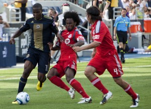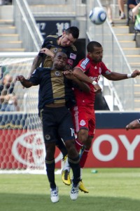 It was a hard-fought, evenly matched game. The Union went up 1-0 in the 61st minute after Michael Orozco Fiscal headed in a corner kick from Le Toux. Chad Barrett equalized for Toronto in the 81st when Philadelphia native Dan Gargan put a throw deep into the box and Barrett went up for the header among three Union defenders.