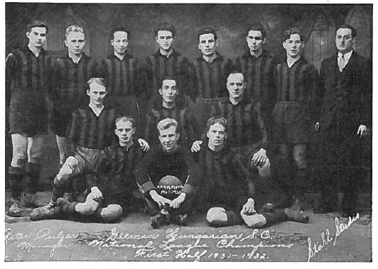 The sport section of Banater Maennerchor had originally been called Banater Athletic Association but in 1930 changed its name to the German-Hungarian Sport Club. The experience of the First Team in the top flight of the league paid off when it won the league’s “first-half championship” in the 1931-1932 season, a feat repeated by the club’s Second Team in the league’s Third Division. In the 1931-1932 season UGH played Philadelphia Passon at Passon Field in Tacony in the first amateur night game in Philadelphia using portable lights mounted on a flatbed truck. They won 4–1.