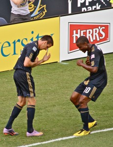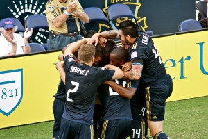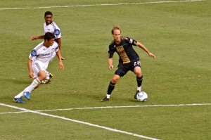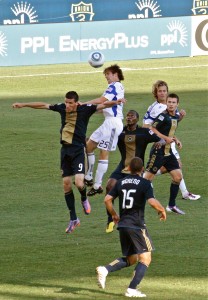 Click on each photo for a full-size version.Sebastien Le Toux goes up for a headballAndrew Jacobson Slides to clear the ball away from Teal BunburyDanny Mwanga feeds the ball over to Sebastien Le TouxSebastien Le Toux one times the ball into the back of the netSebastien Le Toux and Danny Mwanga doing the we just scored danceThe team celebrates Sebastien Le Toux's goal in the first halfJustin Mapp worked the ball past midfield Amobi Okobi passes over to Stefani MigliaranziDanny Califf going high after the ballDanny Califf goes in with a heavy slide tackleSebastien Le Toux and Jonathan Leathers going up for the ballSebastien Le Toux thanking the fans after the game