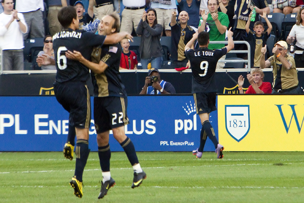 It would be the Frenchman who finally converted on 36 minutes though. Justin Mapp, who was terrific playing his former team, found the ball in space 30 yards from goal. Danny Mwanga made a terrific run to the space to the right of Mapp, and when two defenders followed him, Le Toux found himself standing in acres of space. Mapp played in Le Toux, who opened his hips sending Chicago goalkeeper Sean Johnson diving to his left as Le Toux coolly fired the other way.