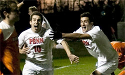 They needed overtime to do it, but Penn defeated Bucknell 1–0 in Thursday night’s NCAA Men’s Soccer Tournament First Round match at Rhodes Field. Christian Barreiro scored after 1:38 minutes of overtime to advance the team in the tournament for the first time since 2002. Penn travels to play the tournament’s second seed on Sunday.