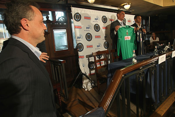 Nick Sakiewicz moments before the start ot the introduction of Faryd Mondragon and Carlos Valdes to the media and Union supporters.