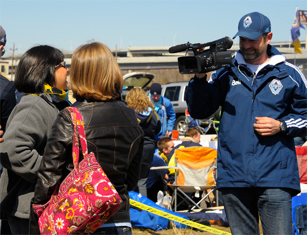 The Vancouver Whitecaps video crew comes over to find out how real supporters party.