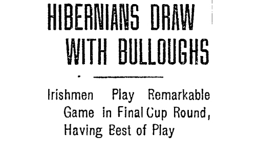Hibernian finally got on the board after fifteen minutes of play in the second half “when Hinds, the outside left of the Hibernians, whipped in a cross shot which Burrows connected with at the mouth of the goal.”