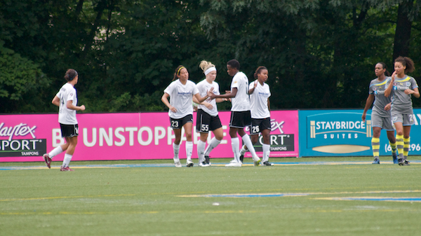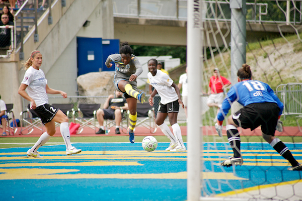 Joanna Lohman earned a birthday assist crossing the ball to Tasha Kai who headed it into the net.