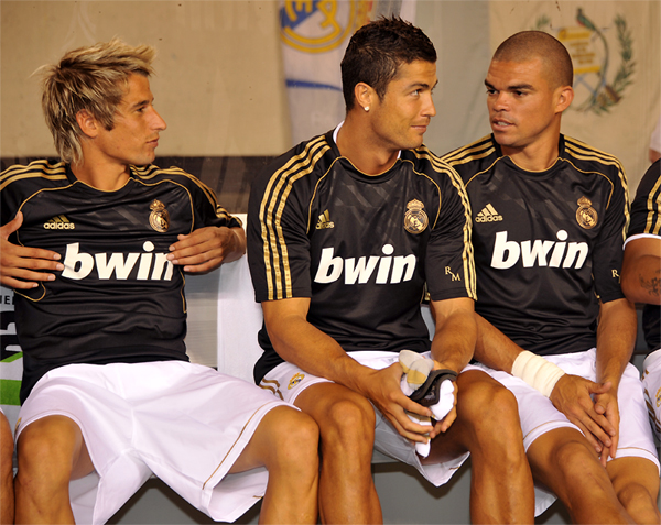 Fabio Coentrao, Cristiano Ronald & Pepe riding the bench.