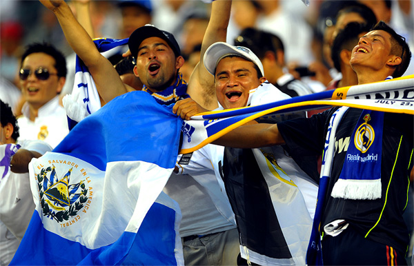 Faryd Mondragon and his little dragons greet Iker Casillas