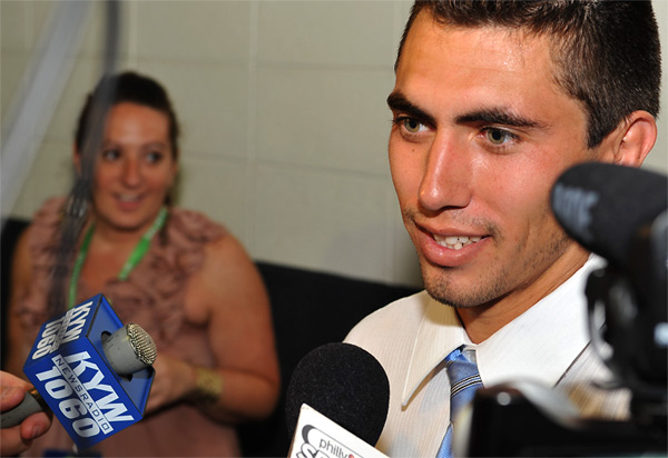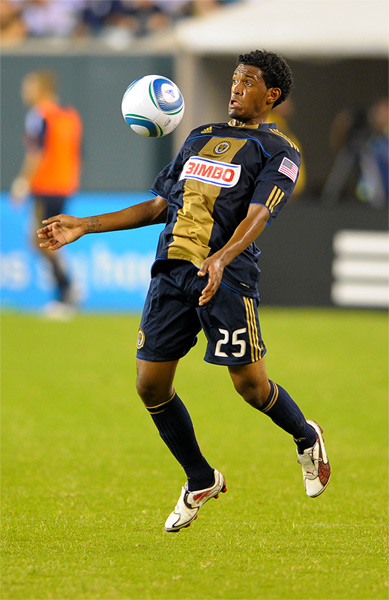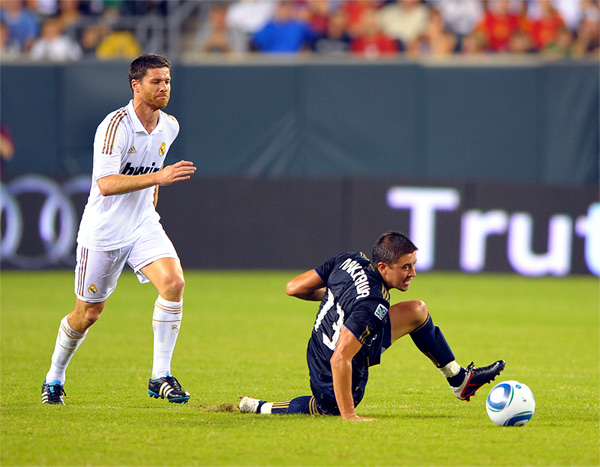 Kyle Nakazawa never stopped fighting for the ball with Xabi Alonso.