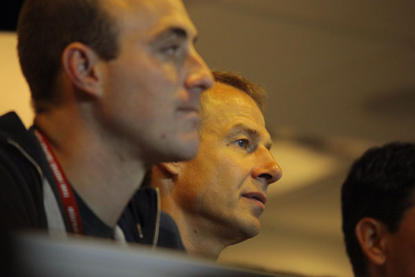 New USMNT coach Jurgen Klinsmann looks on.