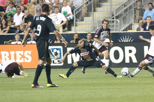 Still, with the unrelenting pressure came the inevitable breakthrough and in this instance, a long Williams’ throw was flicked toward the backpost by Califf, where Sebastien Le Toux was wrestled to the ground by Phelan, again giving the referee little choice but to point to the spot. Up stepped Le Toux to convert the penalty and he dutifully sent Reis the wrong way with a low drive to the back of the net, setting up a frantic finish at PPL Park.