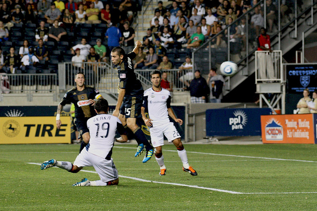 Freddy Adu, who scored the Union’s second goal, had a strong game working the ball up the field.