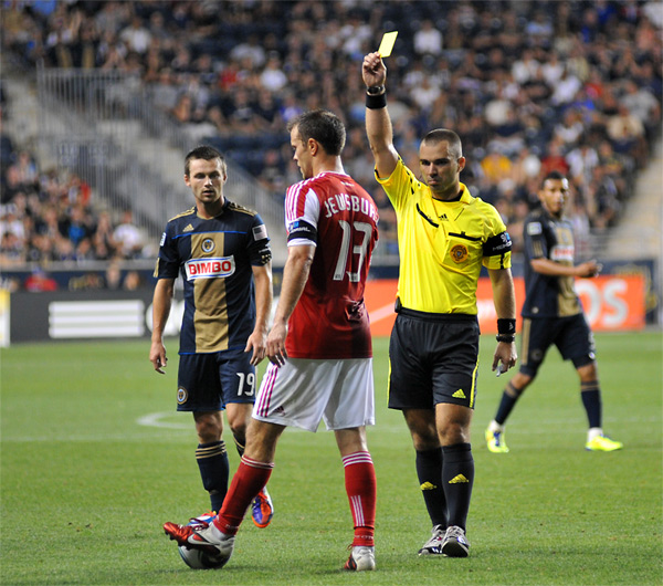 Photo by Earl GardnerJack Jewsbury gets a yellow card
