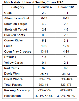 The Union was also more effective defensively in interrupting Seattle’s attack then they were against Chivas USA.