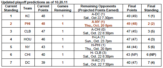 Frankly, the possible conference final standings and playoff seedings are so tongue twistingly complicated that I’ll direct you to the MLS site for the latest playoff standings and possible scenarios.