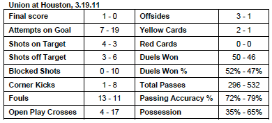 “The goal was one of the few bright spots in a game that, despite the fact that Houston had faced MLS opposition nine times in the preseason while the Union had faced none, was very clearly the first of the season for both teams…It may have been ugly, but, all in all, a great away win to start the season.”