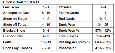 Scoring summary:PHI – Jack McInerney (Sebastien Le Toux) 15′. HOU – Geoff Cameron (unassisted) 84′.