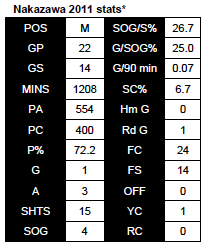 Going into 2012, fans are left to wonder how, or even if, Nakazawa fits into this team. With three or even four players rotating through the attacking fulcrum of the midfield, Nakazawa will have to continue to raise his offensive work rate if his minutes will again increase this upcoming season.