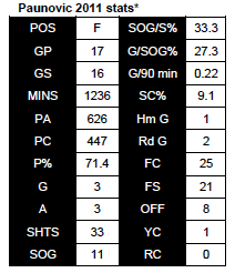 The end of the season. Despite his best efforts, it was plain to see that Paunovic was not a 90 minute player. Given his age, the amount of time he spent away from the game at the highest level, and the fact that he did not benefit from a preseason to build up his fitness, this did not come as a surprise. Yet, the Union coaching staff insisted on playing Paunovic for too long, causing him to fade late in matches, as well as lose efficacy, as the 2011 campaign wore towards its conclusion. This is hardly the player’s fault, but his legs simply could not keep pace as the season ground to a close. After his last goal against Columbus on 20 August, he had played over 600 minutes without finding the back of the net.