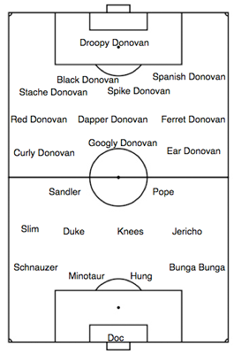 During their next attack I took down their right forward, Curly Donovan. He was a slender guy with curly black hair and a well trimmed beard. Probably their best player. And he went down hard, about 35 yards from goal. The ref gave them a direct free kick. Their coach was yelling something like, “this is it!” Their captain, Dapper Donovan, an prematurely balding young man with a creepy grin on his face and fear in his eyes was supposed to take it. I quickly gave my instructions before we started negotiating the position of the wall. By the time the ref was about to blow the whistle the clock was ticking towards 44 minutes. Dapper Donovan stepped back about 6 yards. As soon as the whistle blew we quickly stepped aside and Doc stepped out of his goal. Dapper noticed what happened and the kill switch came loose in his head. He pounded the ball as hard as he could, but he had lost his stainless steel focus. The ball went high and wide. The Head Donovan exploded in fury. As soon as the ref blew for half time he came running on the field, grabbed Dapper’s arm, and yelled at him. How could he be so stupid to miss in front of an empty goal? “You could have pissed it in!”