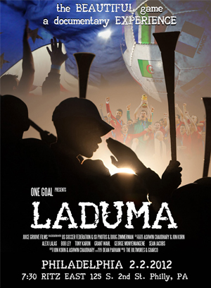 LADUMA, Thursday, February 2 at 7:30pm at the Ritz East. To reserve a ticket, send an email to info@onegoalusa.com or send a message through the One Goal USA Facebook page. Donations of $15 will be accepted at the door to help cover the costs of the screening with $3 going toward the Sons of Ben Help Kick Hunger campaign. You can check out some of Ashwin and Jon’s other fine work on the One Goal USA YouTube channel.