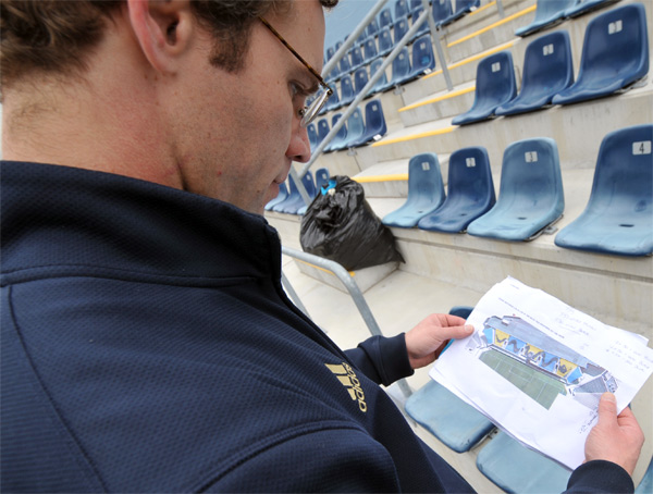 Eric Shertz helps organize the opening day snake Tifo in the River End.