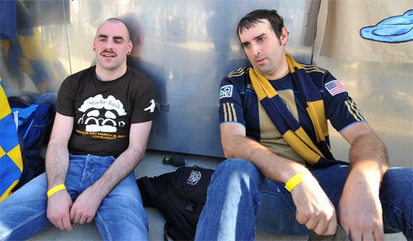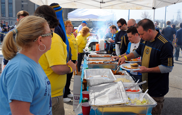 Off in the foggy distance, PPL Park starts to emerge as volunteers continue with their early morning prep.
