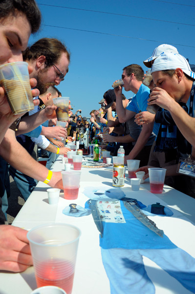 The Bearfight Brigade helped liven up the tailgate with their unique brand of fine adult beverages.