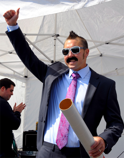 Stache Bash Organizer Jeremy Sharpe introduces Danny to the crowd.