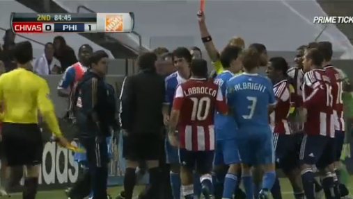 While he was correct in awarding both red cards against the Union, Guzman clearly incensed the Union players and coaching staff by completely buying into Moreno’s diving tactics. Sheanon Williams will still be wondering what he did wrong when Moreno gripped him up, then tackled him and still won the free kick outside the Union box late in the match. Similarly, the fact that Miller Bolanos was allowed to remain on the pitch after being twice called for diving and a rash of off the ball incidents without seeing so much as a caution clearly had the Union seething.