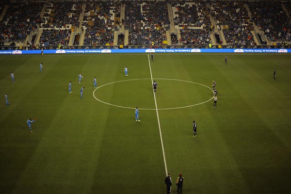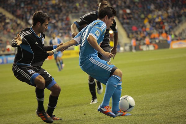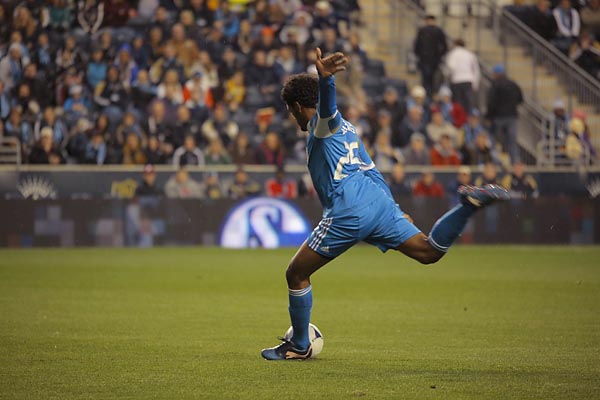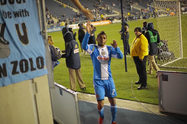 Michael Farfan looks up field.