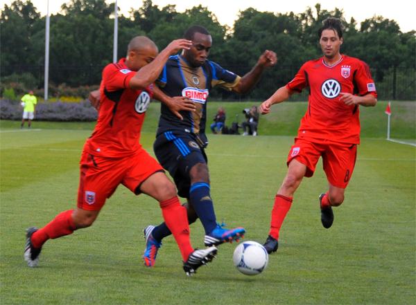 Josué Martínez punches through the DC defense.
