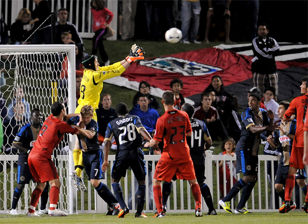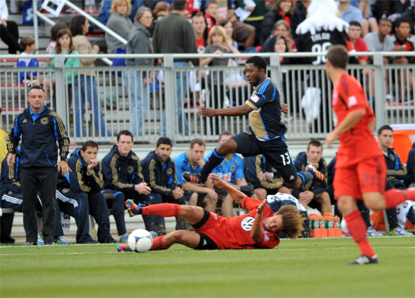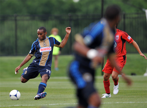 Freddy Adu moves in to block a pass.