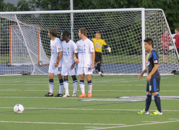 Kai Herdling lines up the free kick that what would be the Union’s second goal in the 3-2 loss.