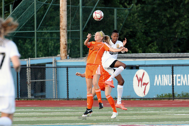 Katelyn Kraft goes up for the header.