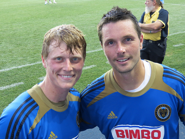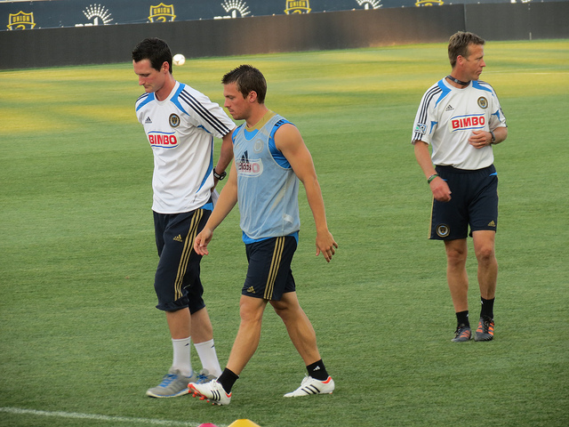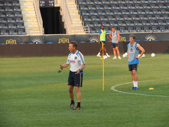 He looked pretty good when the D went of to run some drills simulating defense against set pieces. He out jumped just about everyone (duh, he’s 6’2″) and cleared more than one cross.
