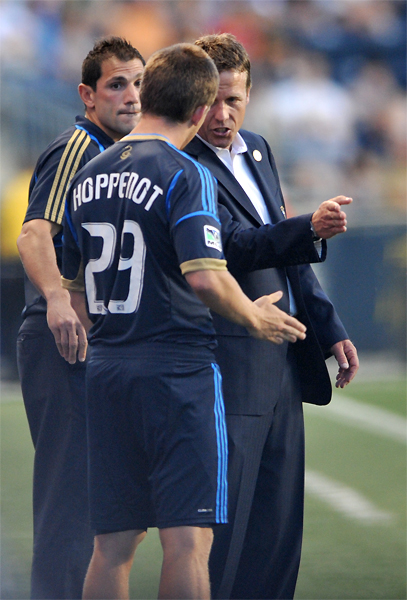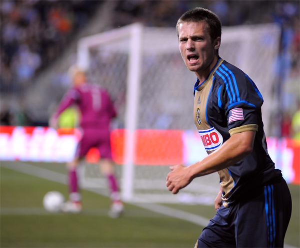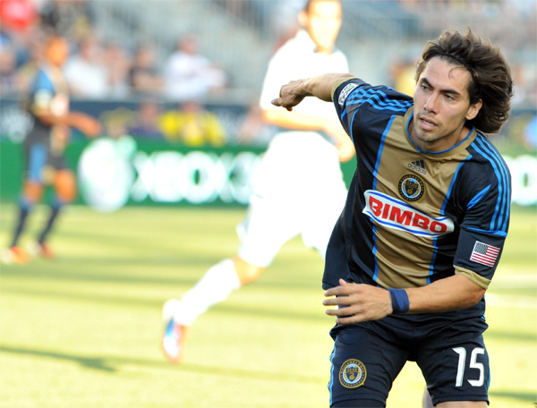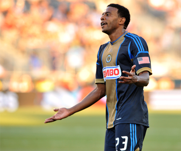 Gabriel Farfan gets taken out by Kei Kamara for the first of many times during the match.