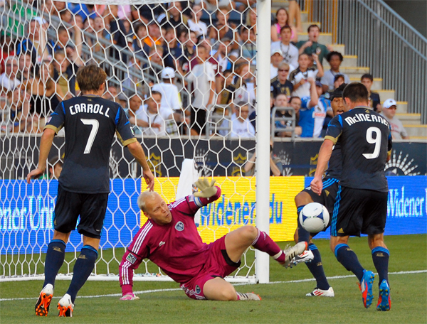 Jack Mac takes the loose ball in front of Rutger Hauer and puts it in the back of the net for his 2nd goal of the night.