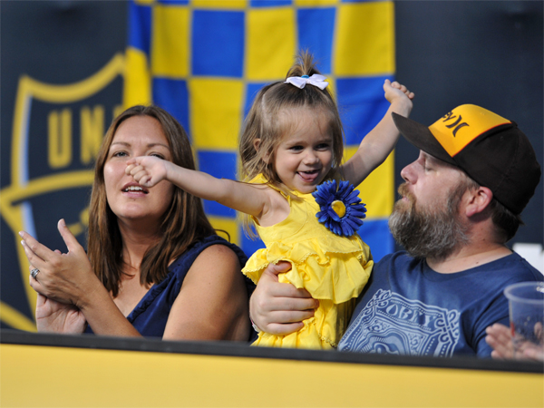 The River End erupts after Lionard Pajoy converts his penalty kick.