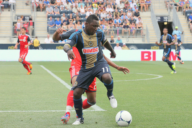 Tucking in from the left wing, Freddy Adu was in scintillating form running at defenders. He tried to take on one too many in the 13th minute though, with McInerney and Pajoy poised for a tap-in after Adu tore through the heart of the Toronto defense, but Toronto snuffed Adu’s shot out.