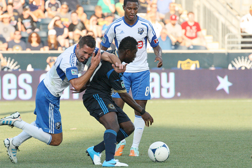 To create this kind of offense throughout the match, Philly needs to close gaps between the midfield and defense and then get either McInerney or a winger to drop into the space between the Montreal back line and midfield. Keeping McInerney high will ensure that Nesta and Rivas can’t close space, so it should be Freddy Adu who fills in the gap and provides an outlet when the team is working out of the back.