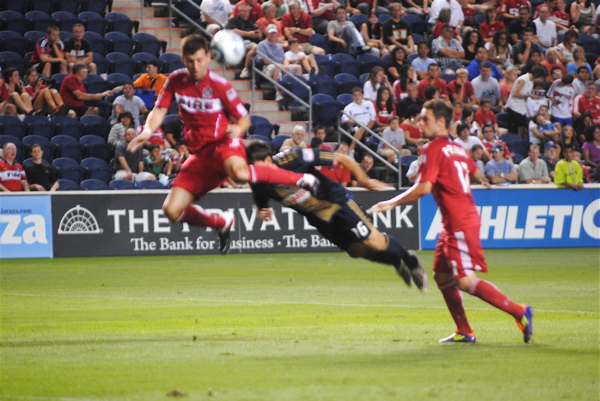 The chosen pass should be thrilling to Union fans, because it is one that few center backs in MLS can play: A lengthy daisycutter to Jack McInerney who is about to check into the space Freddy Adu is ignoring.