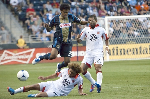 At the half’s close, United nearly equalized, but Adu stepped up to save a goal. United’s Lionard Pajoy, who Philadelphia traded to DC last week for Cruz, collected a corner kick and lofted a header on target over MacMath, only to see Adu step out of the net to head out a goal line clearance. Adu then deflected the rebound shot, and the half closed seconds later with the Union up 1-0.