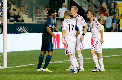 Michael Farfan looked to turn the offensive impetus towards the Union in the 16th minute when he set off on a surging run, beating two defenders before earning the Union their first corner of the night. RSL quickly began to regard Farfan as the danger man for the Union, with Beckerman scything him down moments later.