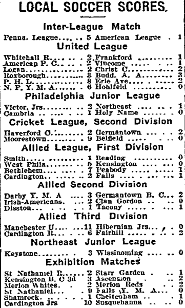 Despite the scoreline, the Inquirer had praise for the “brilliant defense of the American Leaguers” and pointed to their goalkeeper, “who appeared to lose his nerve entirely,” for allowing two second half goals that “any ordinary custodian would have saved.”