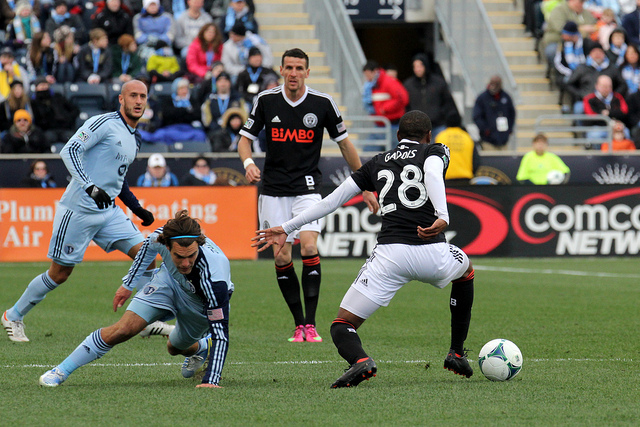 The Union spent the first 40 minutes against Kansas City playing some of the most fluid soccer they’ve ever shown. Their attacking midfield hummed like a well-oiled machine, winning possession and creating chances with short ground passes and well-timed through balls. (Both Farfans on wings? Love.) The fullbacks fired forward like missiles shot from an F-16. Their prodigal striker struck a pretty goal (and could have had another) from Keon Daniel’s exquisitely lofted pass. Philadelphia outshot Kansas City 17 to 7 for the day. It was enough to overlook the sacrifice of a second striker for a second holding midfielder.