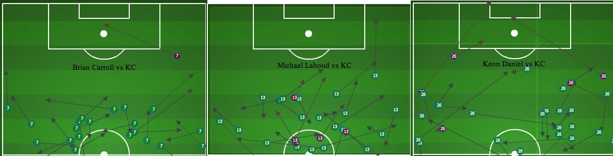 If the Union maintain the formation they debuted last weekend, the ability of the two Colorado midfielders to get wide and create could cause major issues. Brian Carroll and Michael Lahoud did a good job of keeping Kansas City from going up the center of the pitch, but following the play to the wings also left the Union without any offensive push from the middle (see above graphic).