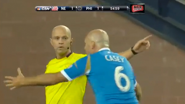 I had the ball kind of under myself and I thought I had both hands on it, and [Conor Casey] came kind of sliding in and kicked it through me. We’ll see what the replay says, but I thought I had both hands on the ball.