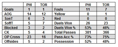 “With the decidedly defensive minded Torsten Frings and Terry Dunfield coming through the center of the pitch, Toronto pinned all their attacking hopes on their two outside midfielders. Union fullbacks Sheanon Williams and Gabriel Farfan proved it a poor tactical decision as they took turns beating their marks.”
